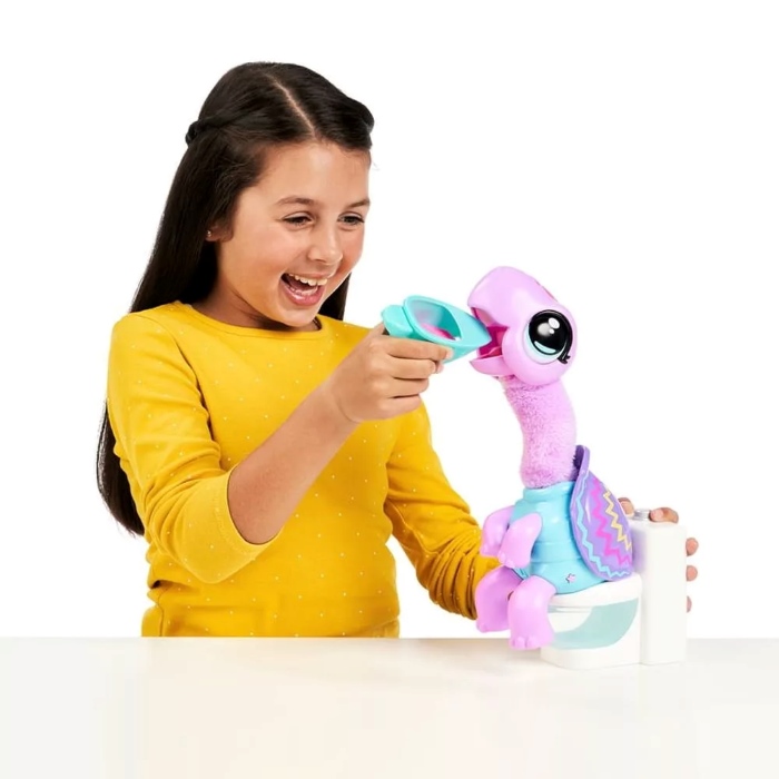 A legviccesebb és legmenőbb teknős! Etesd meg kedvenc varázslatos ételeivel, majd nézd, ahogy a nyaka inog, miközben lenyeli. Totó, a teki eszik és pottyant. Az interaktív teknőst Aqua-homokkal etethetik a gyerekek egy speciális etető segítségével. Ha jóllakott, boldogan dalolászik, és ekkor gyorsan a wc-re kell helyezni, hiszen Totó készen áll a pottyantásra! Amikor a teki megkönnyebbült, szívesen beszél is gazdájához, hiszen megismétel minden mondatot, a felvevő gomb lenyomásának segítségével.