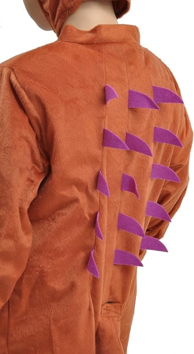 Ez a gyermek méretű monster-stílusú overál jelmez puha, egyberészes kialakítással és karakteres részletekkel (fejrész, farok, tüskék) készült, így könnyen feladható és kényelmes viseletet biztosít. Remek választás farsangi bulikra, tematikus szerepjátékokra vagy bármilyen jelmezes eseményre, ahol a kicsi egy vidám, mesés lényként tündökölhet.