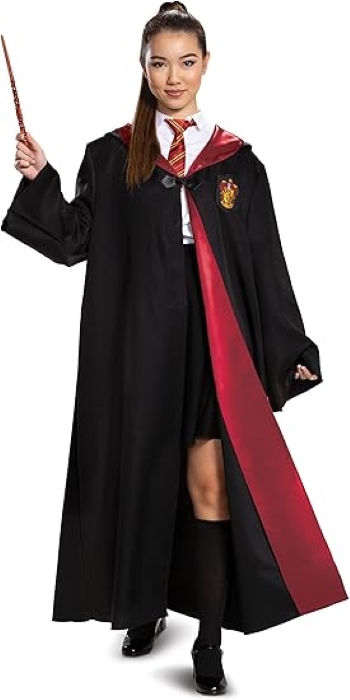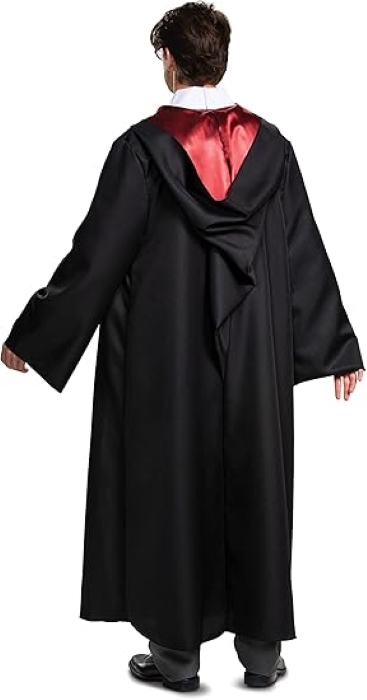 Harry Potter Gryffindor Costume Combo Deluxe Hooded - felnőtt, uniszex jelmez amely a Harry Potter sorozat Griffendél házához kötődő varázsló köpenyt ad megjelenésül. A szett hosszú köpenyből és jellegzetes mintázatú kiegészítőből áll, így a viselője könnyen a Roxfort diákjává válhat jelmezes alkalmakon. Alkalmas farsangi bulikra, tematikus eseményekre és filmélmények újrajátszására, egyszerű, könnyű anyagból készült viselet.