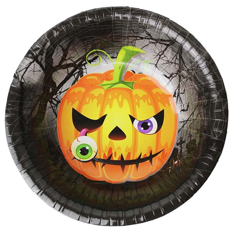Itt a borzongás és a csínytevés hónapja, az október! Szerezd be gyorsan magadnak a legtutibb kellékeket és mutasd meg mindenkinek, hogy neked van a legijesztőbb házad idén halloweenkor! Csapj le most erre a 10 darabos, ijesztő tököt ábrázoló papírtányér szettre, és egy szempillantás alatt igazi horrorfilmes helyszínné válik a konyhátok! Tedd a 17 centiméteres tányért az ijesztő szalvétád vagy poharad mellé és mutasd meg a barátaidnak, hogy mennyire imádod a hátborzongató dolgokat. Legyél idén te a legjobban halloweenre hangolódott csínytevő 5 éves kor felett és ne felejtsd el a legfontosabb mondatot: csokit vagy csalunk!