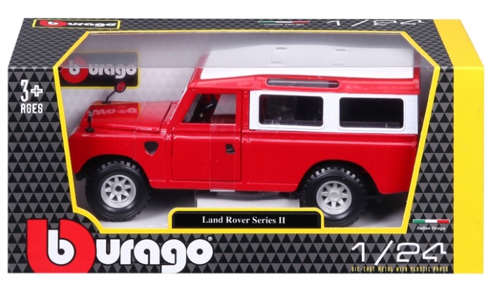 Bburago Land Rover Series II 1:24 egy 1:24 méretarányú fém modellautó, amely a klasszikus Land Rover Series II terepjárót idézi meg élénk piros színben. A részletgazdag kidolgozásnak köszönhetően az autó nyitható ajtókkal és motorháztetővel, valamint gumikerekekkel rendelkezik, ami élvezetes játékélményt vagy gyűjtői darabot biztosít. A modell kb. 17 cm hosszú, strapabíró zinko-alumínium karosszériával készült, és 3 éves kortól ajánlott klasszikus autós játékokhoz vagy gyűjteménybe.