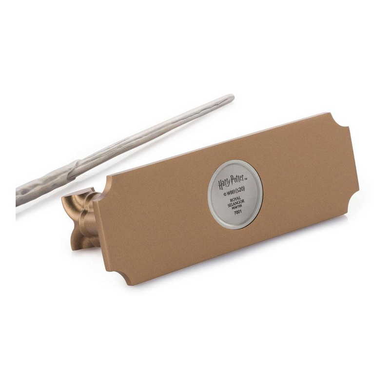 Replica in satin finish pewter comes complete with a Gothic style bonded porcelain stand given a bronze finish. Size: - Wand: 35 cm - Stand: 6 x 17 x 5.5 cm