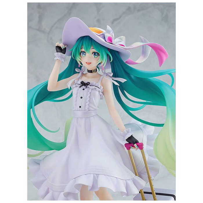 A 2021-es Hatsune Miku GT Project hivatalos karaktere, a Racing Miku 2021 Ver. mostantól 1/7-es méretarányú figura! Az En Morikura által készített eredeti 2021 Racing Miku illusztráció gondosan életre keltett, szemkápráztató részletességgel. A hajához festett, áttetsző részeket használtak, ami finoman áttetsző megjelenést eredményez. Ne hagyd ki a hajának és ruházatának dinamikus modellezését, vagy a vignetta stílusú macskaköves alapot! Mindenképpen egészítsd ki gyűjteményedet ezzel a privát alkalomra öltözött Miku figurával!