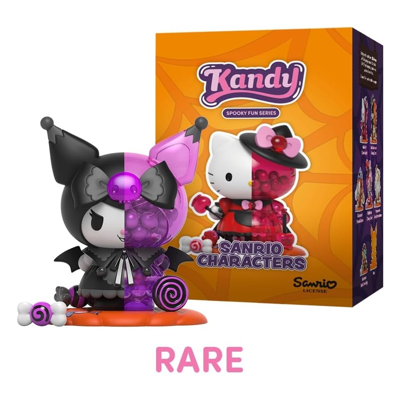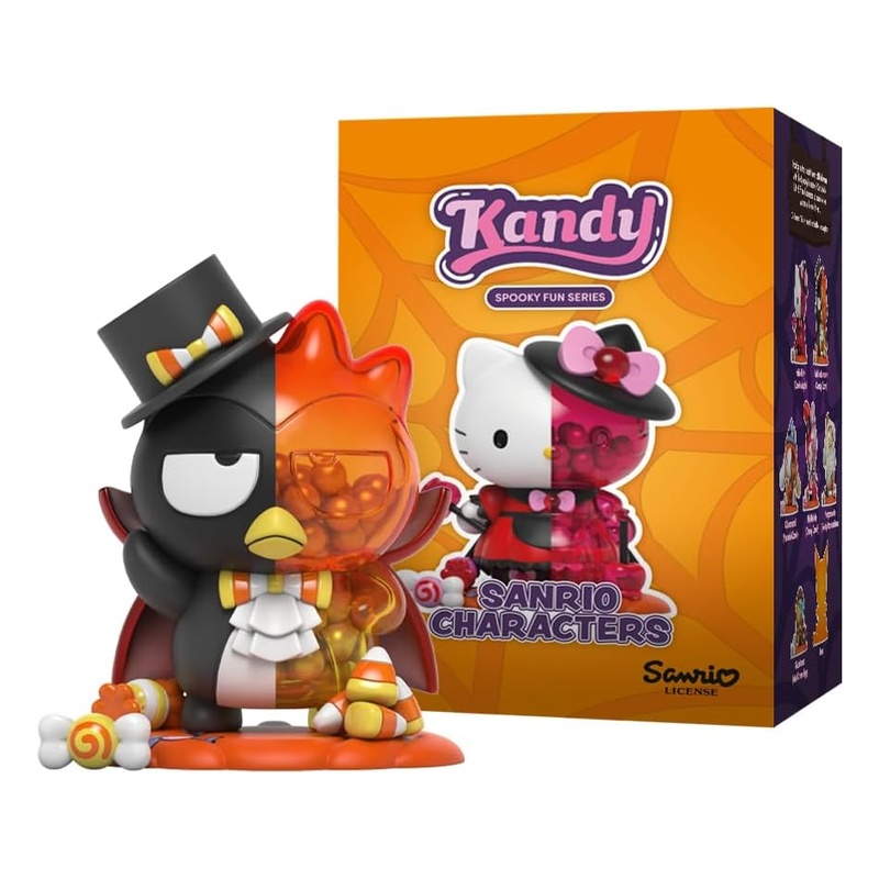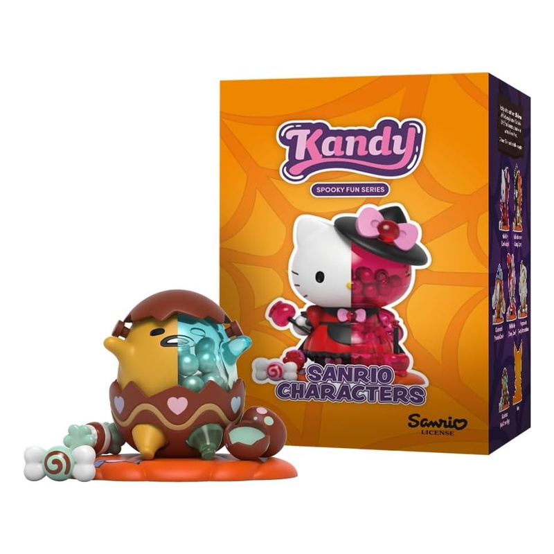 Licencelt Sanrio meglepetés figura a Kandy szériából, Halloween témájú, édességes dizájnnal. A doboz 1 db véletlenszerű figurát tartalmaz a kollekcióból, többféle változat gyűjthető, köztük ritkább kiadás is. A figurát telefonos beolvasással digitális tartalom és eredetiségigazolás is elérhető a Mighty Jaxx alkalmazásban.