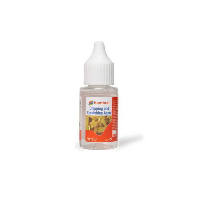 Valósághű lepattanások és kopott élek létrehozása. Ecsetelje vékonyan a kezdeti festékrétegre, majd hagyja megszáradni, és vigyen fel egy 2. festékréteget az előkészített lepattanó rétegre. Száradás után a kívánt hatás eléréséhez távolítson el kis részeket a festékből vízzel átitatott ecsettel. Csak Humbrol akrilfestékeket használjon ezzel a termékkel.