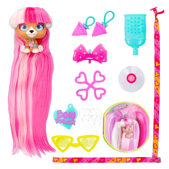 Ez egy interaktív divatos kutyus figura a VIP Pets Bow Power sorozatból, amely extra hosszú (kb. 30 cm) fésülhető hajjal érkezik egy hajlakk-szerű csomagolásban, amit kibontva már kezdődhet is a játék. A csomag több mint 8 fodrászkelléket és stílusos kiegészítőt tartalmaz, amelyekkel akár kreatív frizurákat is készíthetnek a gyerekek. A játék 3-4 éves kortól ajánlott, és remek szórakozást nyújt frizuratervezéshez és kreatív szerepjátékhoz.