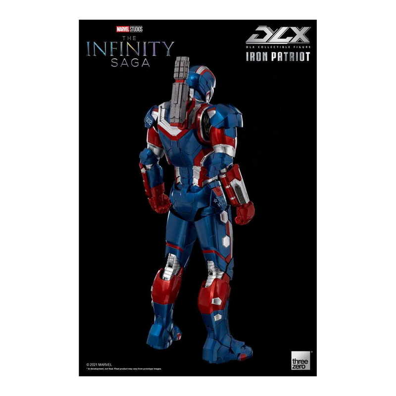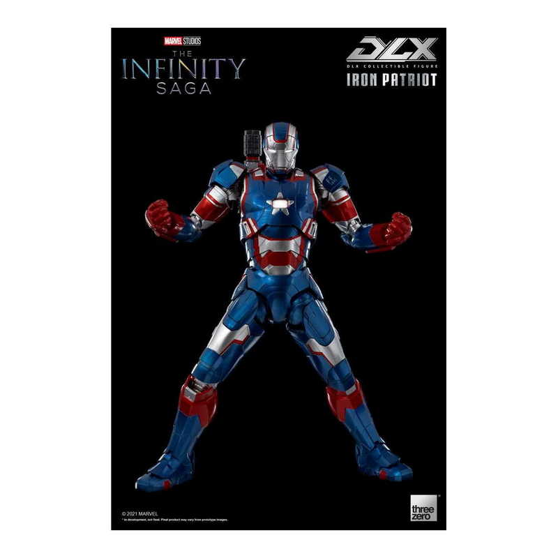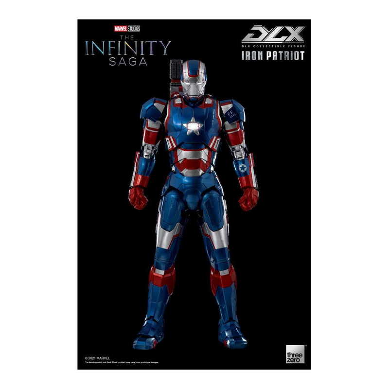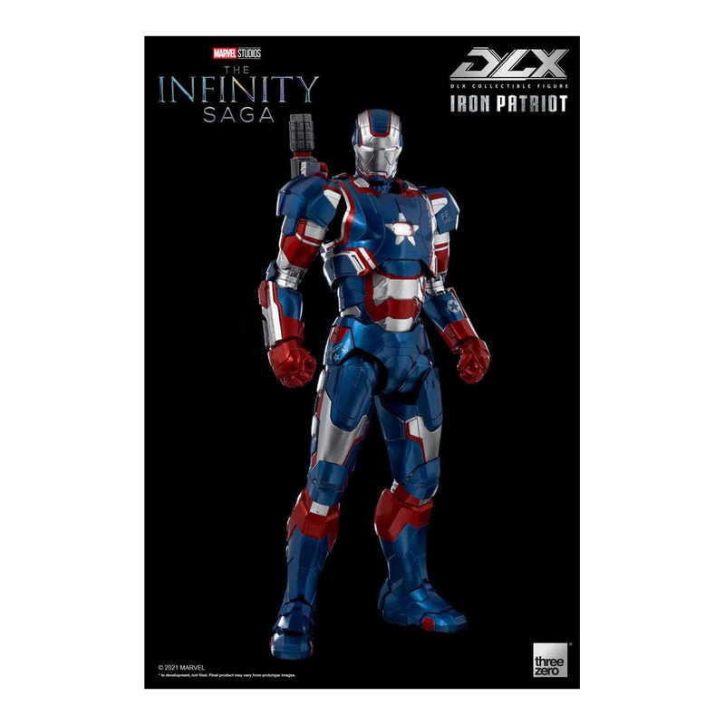 A DLX Iron Patriots klasszikus kék és piros páncélja mobil kiegészítőkkel kel életre. A hátra szerelt ágyúja elforgatható a különböző váll fölötti pózokhoz, a felcsatolható mikroágyú mindkét alkarra rögzíthető, a lábakra pedig repülési effektek rögzíthetők az akciópózokhoz. A figura két világítási funkcióval is rendelkezik a mellkasán és a szeménél.