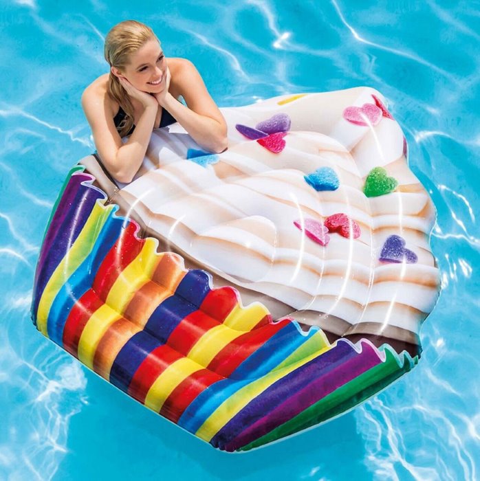 Ez a termék az Intex Cupcake felfújható strandmatrac, amely 142 x 135 cm-es méretével és látványos, cupcake formájú dizájnjával igazi nyári hangulatot teremt a strandon vagy a medencében, miközben kényelmes és stabil lebegést biztosít a vízen pihenéshez és relaxáláshoz, a részletgazdag, színes kivitel pedig különleges és figyelemfelkeltő megjelenést ad, Méret: 142 x 135 cm, Anyag: strapabíró PVC/vinyl, amely ellenáll a vízi használatnak és a nyári igénybevételnek, hosszú élettartamot biztosítva, Korosztály: kb. 3 éves kortól ajánlott, így gyerekek és felnőttek számára is ideális választás, ez a cupcake formájú matrac nemcsak praktikus vízi eszköz, hanem egyedi és látványos nyári kiegészítő is, amely minden strandolást élménnyé tesz.