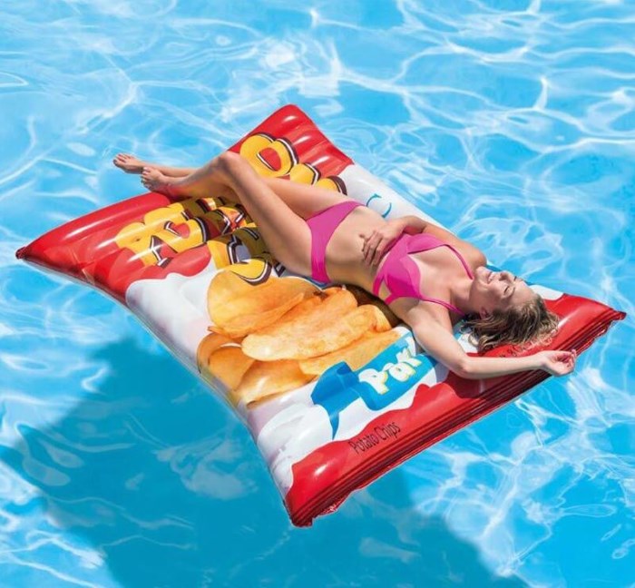 Ez a termék az Intex Potato Chips felfújható strandmatrac, amely látványos, chipses zacskót idéző dizájnjával azonnal feldobja a medencés vagy tengerparti pihenést, miközben kényelmes és stabil lebegést biztosít a vízen relaxáláshoz és napozáshoz, a nagy fekvőfelület pedig ideálissá teszi hosszabb pihenésekhez is, amikor csak hátradőlnél és élveznéd a nyarat, Méret: 178 x 140 cm, Anyag: strapabíró PVC/vinyl, amely ellenáll a vízi használatnak és a nyári igénybevételnek, hosszú élettartamot biztosítva, Korosztály: kb. 14 éves kortól ajánlott, így tinédzserek és felnőttek számára is ideális választás, ez a különleges, chipses dizájnú matrac nemcsak praktikus vízi eszköz, hanem egy igazán feltűnő, humoros nyári kiegészítő is, amely garantáltan magára vonja a figyelmet a vízparton.