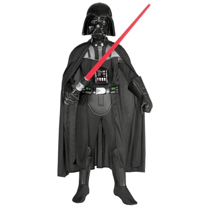 Ez a gyerek Star Wars Darth Vader jelmez egy mintás overállal, köpennyel és karakteres maszk-elemmel ad sötét, ikonikus megjelenést farsangi bulikra vagy szerepjátékhoz. Puha, kényelmes anyagból készült, aktív játékhoz és mindenféle jelmezes alkalomhoz alkalmas.