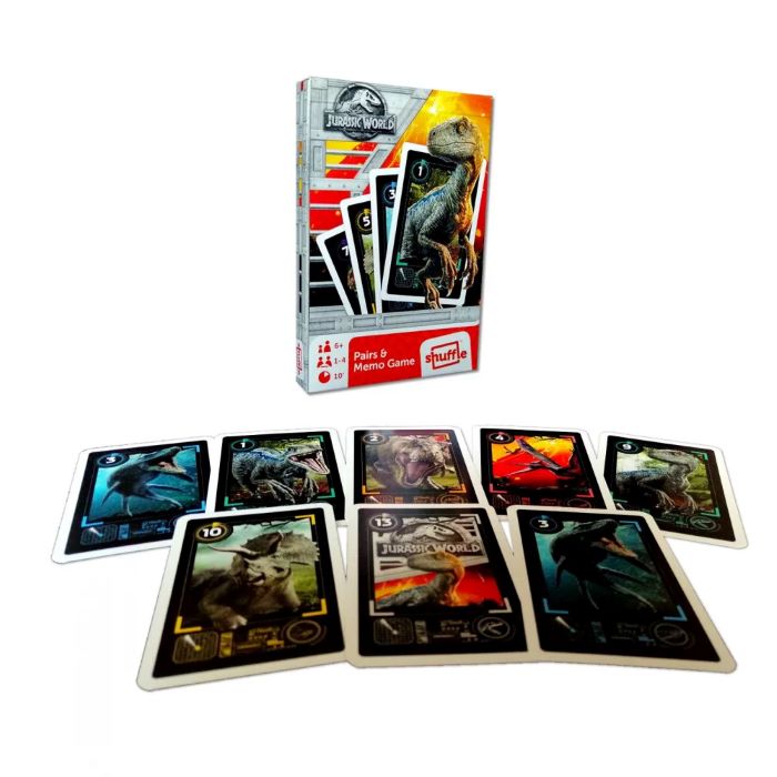 A közkedvelt Fekete Péter kártyajáték most a Jurassic World dínóival szórakoztat! A fordulatokkal teli, izgalmas játékban pusztán szerencsére van szükség a győzelemhez! A kártyapartit az a játékos nyeri, akinek elsőként elfogynak a lapok a kezéből! Ezen felül memóriajátékot is lehet játszani a kedvenc dínóiddal! Sok szerencsét a játékhoz!