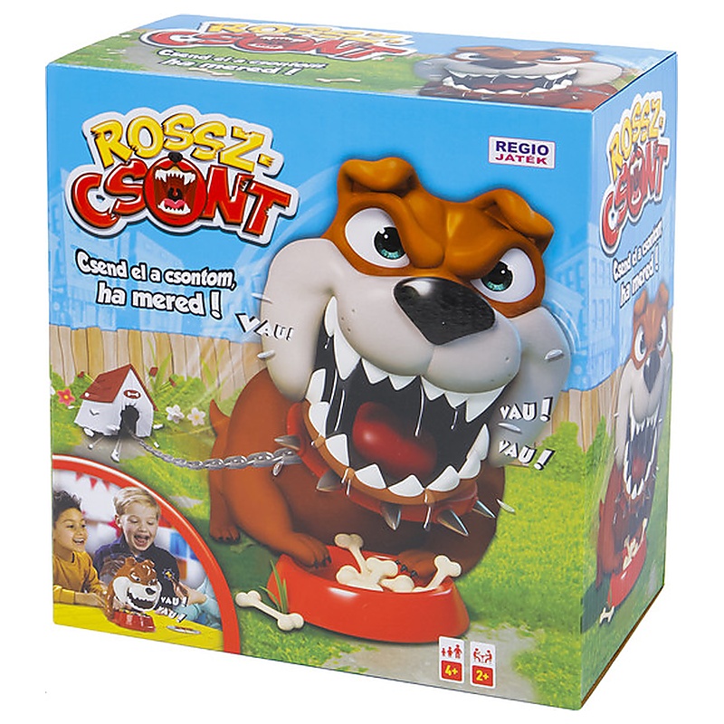 A Rosszcsont egy vidám ügyességi társasjáték, amely 2-4 fővel játszható, a játékidő pedig általában kb. 15-20 perc. A játék lényege, hogy a játékosok a pörgető által meghatározott számú és színű csontot próbálják elcsenni a szunyókáló kutya táljából úgy, hogy közben ne ébresszék fel. A csipeszes játékmenet miatt a játék jól fejleszti a finommotorikát, a koncentrációt és a kézügyességet, miközben végig megmarad a feszültség és a nevetés. A 4 éves kortól ajánlott játékmenet egyszerűen tanulható, ezért kisebb gyerekekkel közös családi játékra is nagyon jó választás. A dobozban kutyafigura, tál, csontok, csipesz és pörgető is található, így a játék látványos és könnyen elővehető. Azoknak ajánlható, akik rövidebb, pörgős, ügyességre épülő társasjátékot keresnek ovis korosztálynak vagy családi közös játékhoz