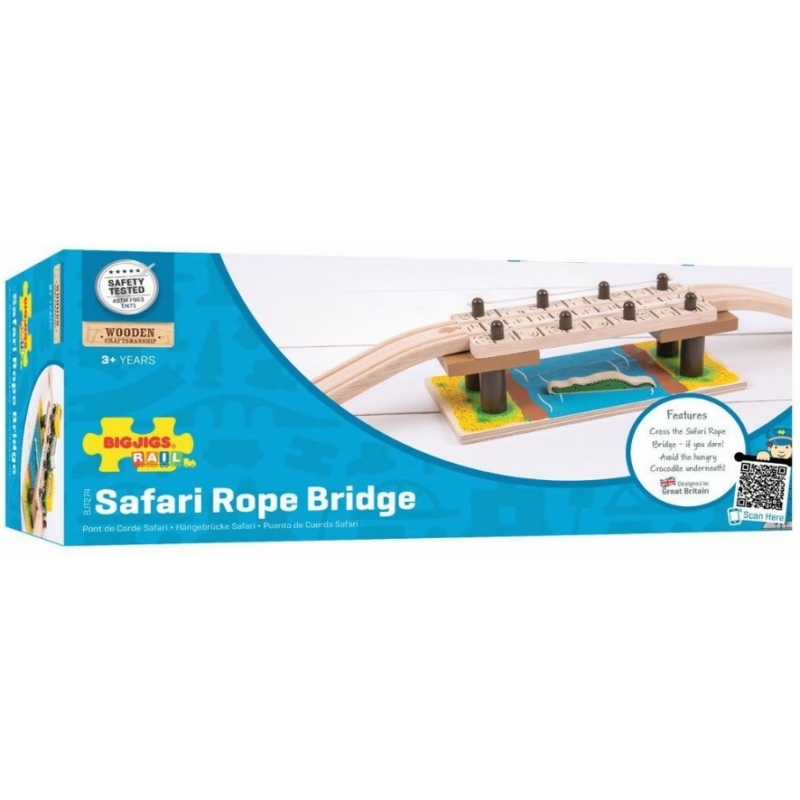 | Megnevezés | Fa vonatpálya játékszett Safari kötélhíd krokodillal 4 db-os Bigjigs (151429) |
