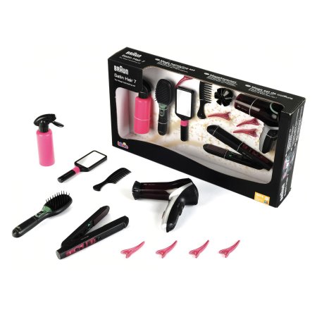 Figyelem! Ez gyerekek számára készült játék, kicsit megtévesztő, hiszen pont ugyanolyan, mint amilyet a felnőttek használnak! Tedd nagyszerűvé a frizurád! A Braun frizurakészítő készletben megtalálható minden, ami egy tökéletes frizurához szükséges, mint például hajszárító, hajvasaló, hajcsatok, fésű, kézi tükör. A hajszárító működéséhez 1db R06 ceruzaelem szükséges (nem tartozék). A hajvasaló működéséhez 1 db R03 vékony ceruzaelem szükséges (nem tartozék) A hajkefe működéséhez 1 db R03 vékony ceruzaelem szükséges (nem tartozék) Ajánlott: 3 éves kortól Gyártó: Theo Klein GmbH Származási hely: Németország