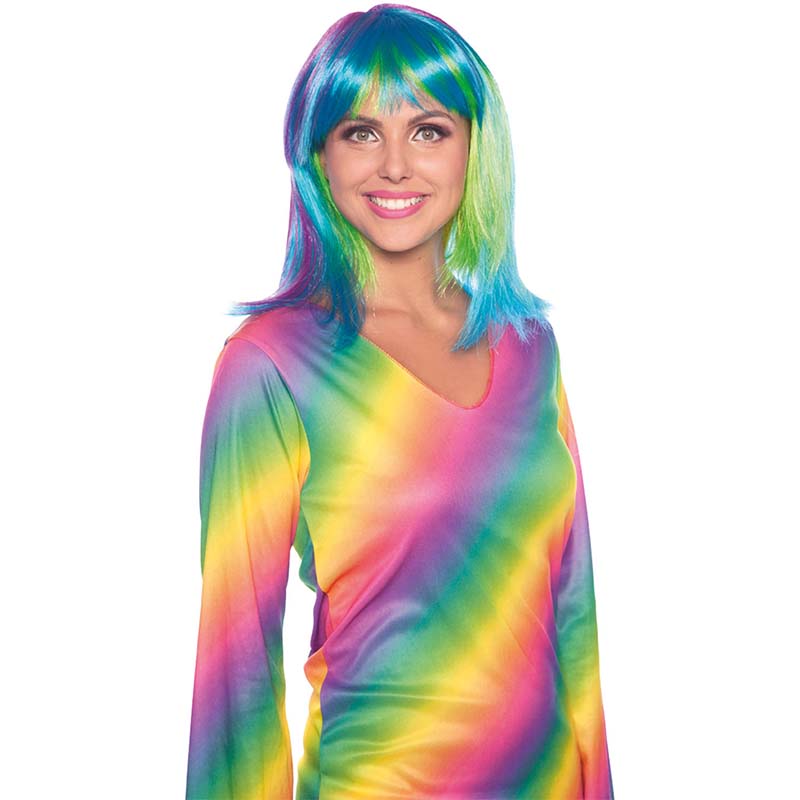MegnevezésFélhosszú bob paróka neon szivárvány színű (26715)