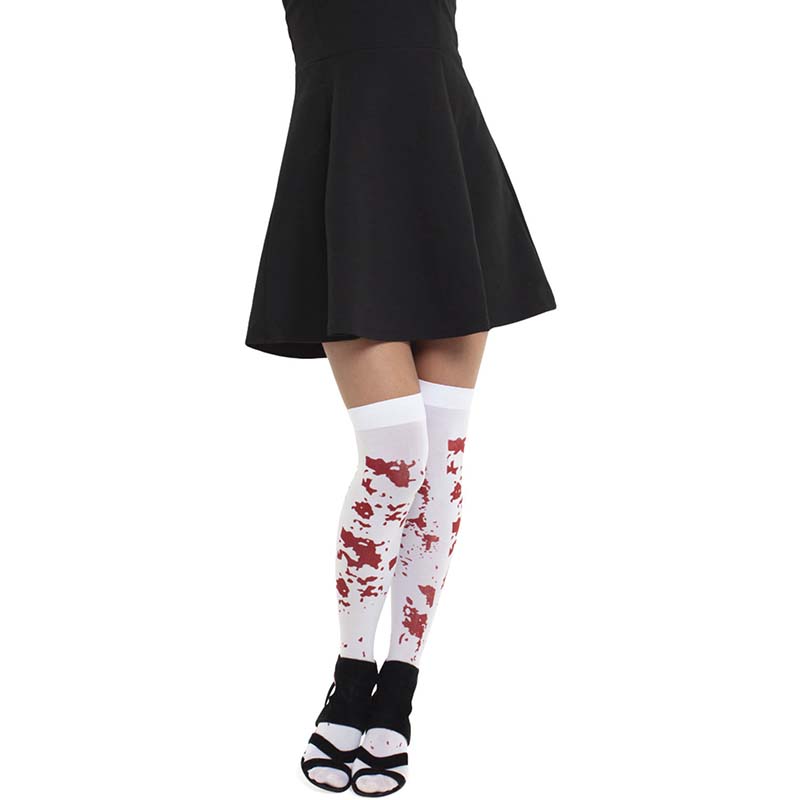 Egy harisnyával könnyedén feldobhatod a megjelenésed, nincs más dolgod, mint kiválasztani a hozzá illő viseletet. Ez a harisnya álvérfoltokat tartalmaz, hogy könnyebben tudj zombi lánynak öltözni vagy zombi diáknak. A zokni egy méretű így ideális választás egy 8-12 éves leányzónak. Rendeld meg te is, hogy tiéd legyen a legfeltűnőbb megjelenés.