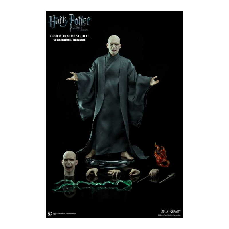 1/6 méretarányú, hivatalosan engedélyezett akciófigura, kb. 30 cm magas. Teste 30 ponton átcsukható. Hiteles és részletes, teljes mértékben megvalósított képmása Lord Voldemortnak a `Harry Potter és a Halál ereklyéi című filmből. Pontos arckifejezés részletes bőrtextúrával. A fej és a szobor minden egyes darabja speciálisan kézzel festett.