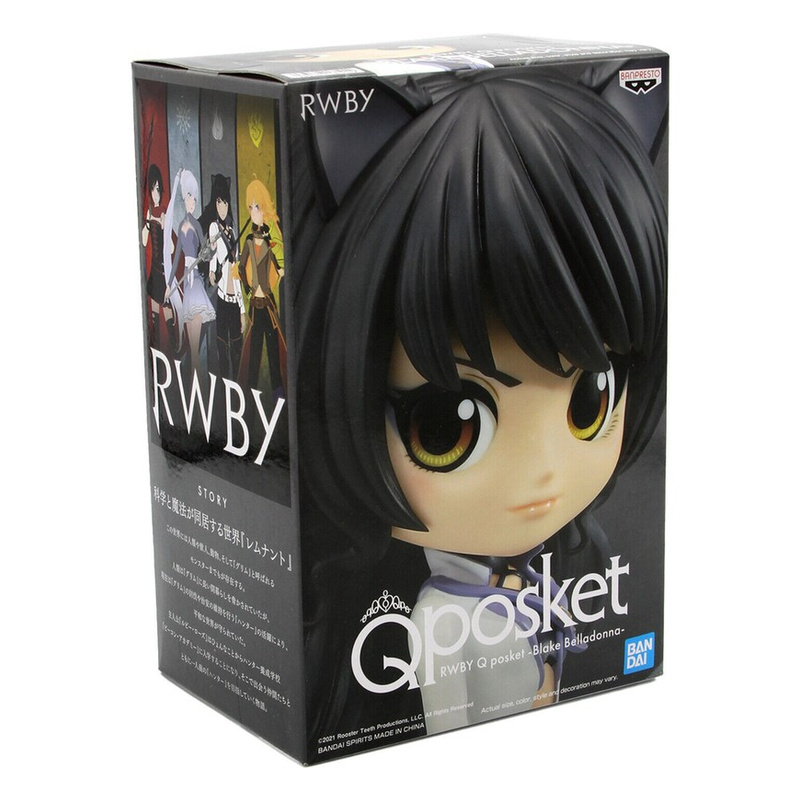 A RWBY sorozatból Blake Belladonna érkezik a Banpresto Q Posket szériájában. A figura kb. 14 cm magas, szépen festett, dekoratív gyűjtői darab, ami polcon vagy vitrinben is jól mutat. Nem mozgatható, inkább kiállításra való, díszdobozos csomagolásban.
