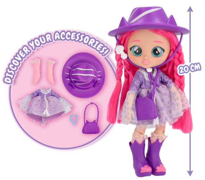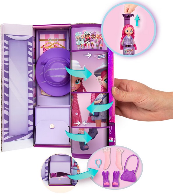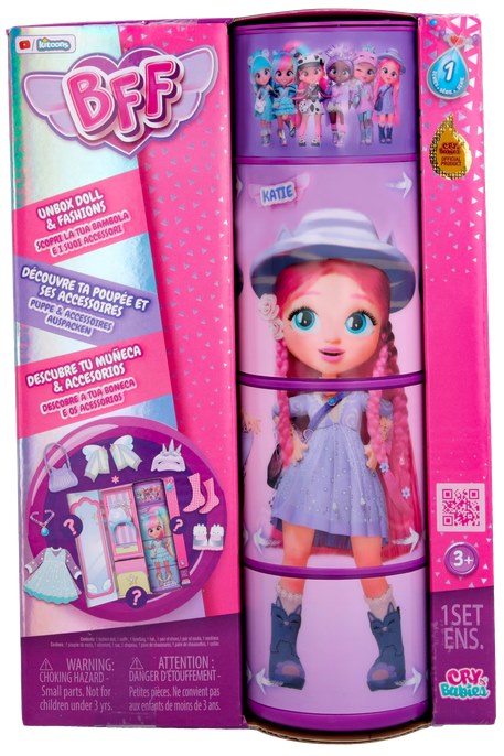 Ez egy 20 cm magas Cry Babies BFF Katie divatjátékbaba a Best Friends Forever kollekcióból, amelyet 3 éves kortól ajánlanak. A figura mozgatható végtagokkal és részletesen kidolgozott ruházattal rendelkezik, valamint több divatos kiegészítő (pl. táska, kalap, cipő, nyaklánc) is része a csomagnak. A játék kreatív szerepjátékot, öltöztetést és divatos megjelenések kialakítását ösztönzi gyerekek számára.