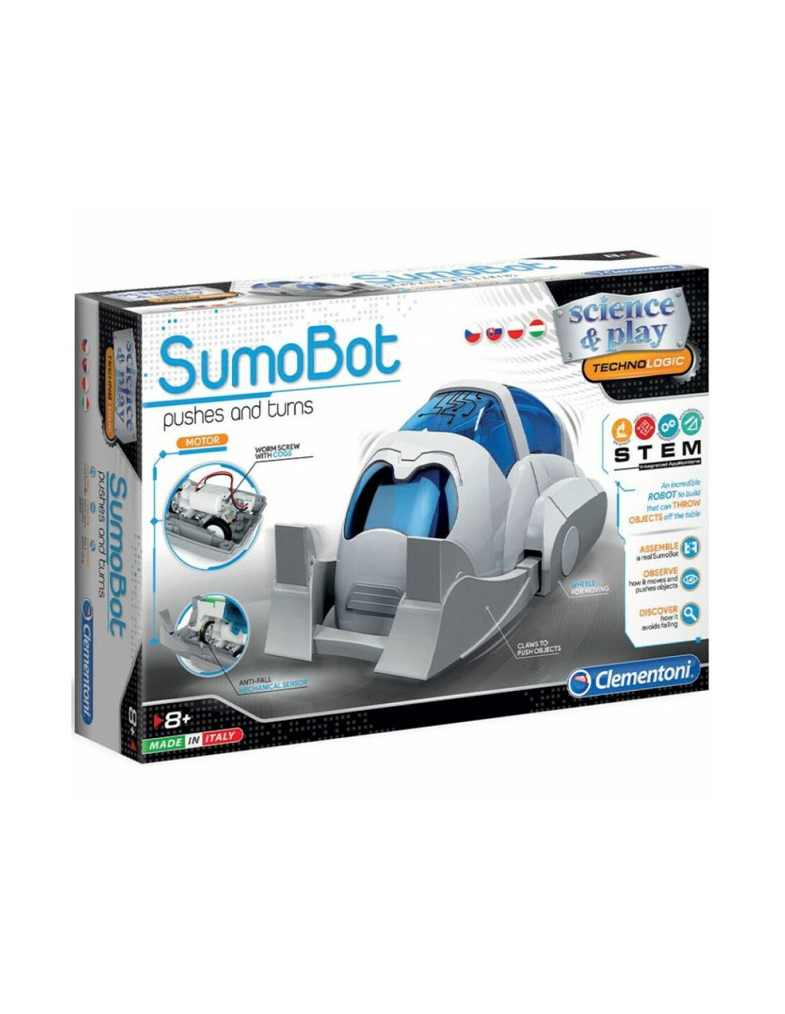 Az SumoBot egy igazán különleges robotfigurája a Clementoni Science and Play kiadásának, hiszen most egy kicsit játékosabban, és nem kevésbé izgalmasan kóstolhatsz bele a robotika világába! Csak szereld össze őt, és meglátod mennyire klassz, hiszen olyan érzékelőkkel van ellátva, amelyekkel képes felismerni a felületet ahová letették és úgy tud közlekedni rajta, hogy nem esik le róla!