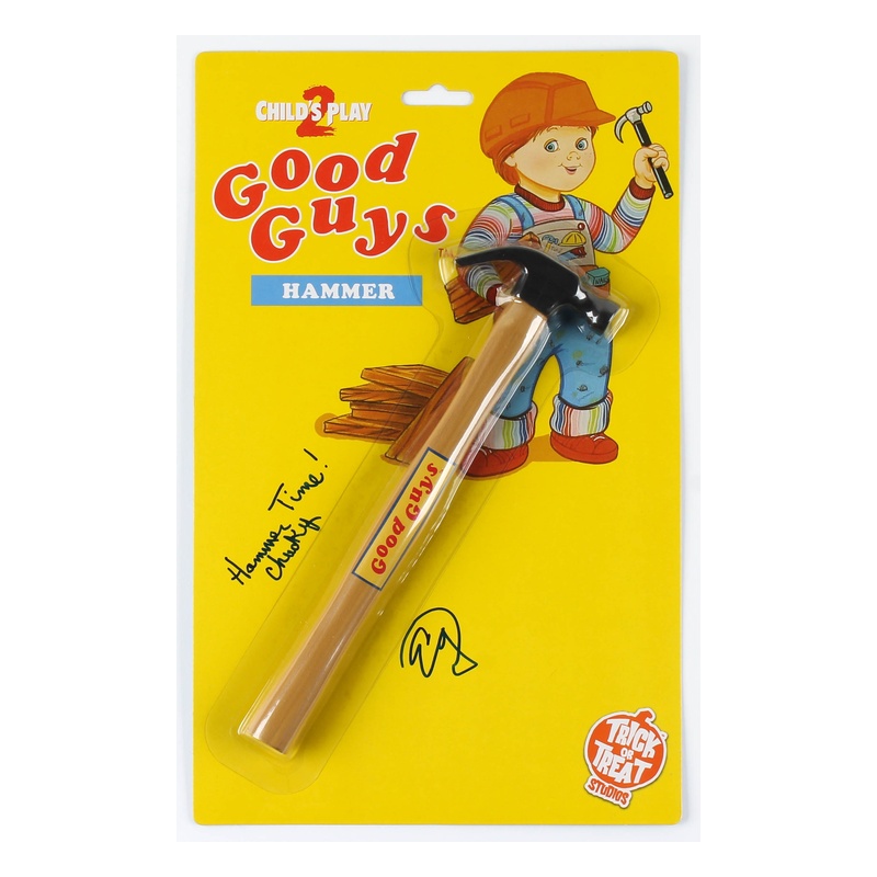 Ha Chucky-rajongó vagy, ez egy kötelező kellék: a Childs Play 2-ből ismert Good Guys kalapács hivatalos replika változata. Könnyű, puhább poliuretán habból készült, kb. 23 cm magas, ezért vitrinbe is jól mutat, jelmezhez pedig kézbe fogva is kényelmes. Kifejezetten a Trick or Treat Studios 1:1 Good Guys (Chucky) babához készült kiegészítőként, ami külön kapható.