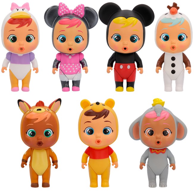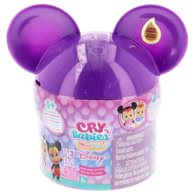 Cry Babies Magic Tears Disney Edition egy Disney-témájú "Magic Tears" meglepetés baba figura, amelyben a klasszikus Disney karakterek kis Cry Babies változatai rejtőznek. A csomagban egy véletlenszerű figura található különféle kiegészítőkkel, és ha a babát megitatod a mellékelt cumisüvegből, a pocakját megnyomva igazi "könnyeket" sír játék közben. A figura kb. 13 cm magas, több Disney karakter variáns gyűjthető belőle, és 3 éves kortól ajánlott játék- és gyűjthető elem.