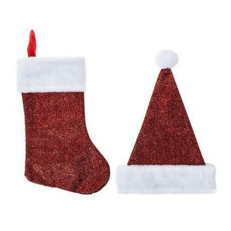 MegnevezésPlüss télapó zokni 37 cm és sapka flitter hatású 41 cm (152628)