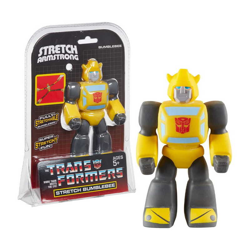 A Transformers népszerű Bumblebee figurája stretch változatban.Fogd meg a végtagjait és nyújtsd ki, majd engedd el és nézd, ahogy visszatér eredeti alakjához és méretéhez.