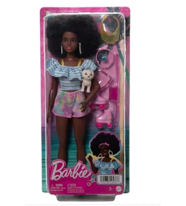 A Barbie görkorcsolyás divatbabája sportos, színes öltözékben érkezik rózsaszín görkorcsolyával és divatos kiegészítőkkel (napszemüveg, övtáska). A szett egy aranyos kiskutyát is tartalmaz. Kreatív szerepjátékhoz ajánlott, 3 éves kortól.