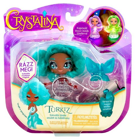 Ez egy Skyrocket Crystalina sorozatú kristálytündér figura, amely világító, színváltós LED-effektű játék a gyerekek számára. A figura áttetsző "kristályos" megjelenésű, és türkiz színű kiegészítőkkel rendelkezik; minden Crystalina tündér egyedi, kristály-inspirálta "aurát" képvisel, amelyet színváltó fényekkel és mintákkal közvetít. A csomaghoz rendszerint tartozik egy viseletre alkalmas amulett nyaklánc és egy kiállító talp, amelyekkel a fények varázslatosan cserélhetők a figura és az amulett között, így interaktív és gyűjthető játékélményt ad 4 éves kortól.