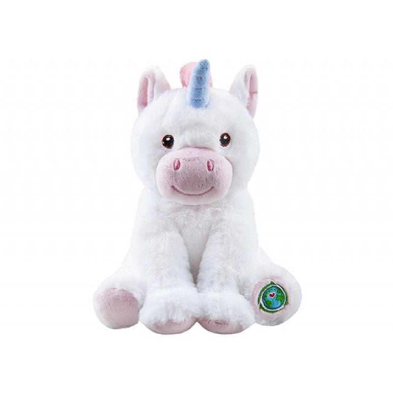 Ez az aranyos, hófehér plüss unikornis puha tapintású és kellemes társ lesz minden korosztálynak. Az Eco Plush termékcsalád részeként környezettudatos megoldással készül: 100�%-ban újrahasznosított PET-palackokból előállított poliészter anyagból származik. Méretében kényelmes, és ideális méretű ahhoz, hogy ölelő társként vagy dekorációként is funkcionáljon.