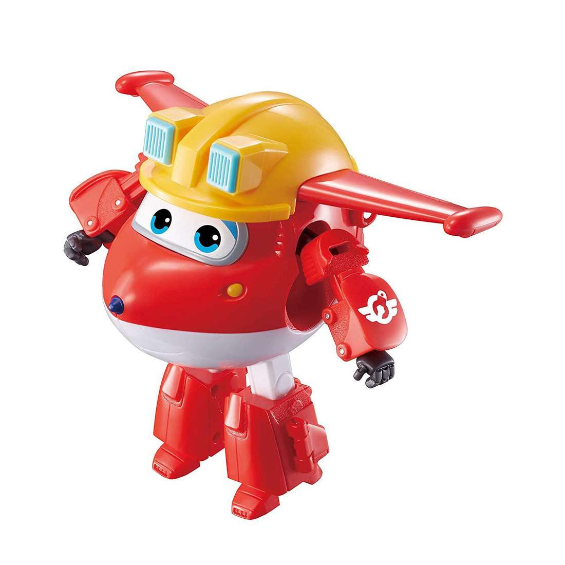 Kedvenc Super Wings szereplőd, Jett, a piros repülő most valódi szuperhőssé alakul át! Sőt, most egy munkavédelmi sisakot is visel! A figura egyetlen mozdulattal alakítható át repülőből robottá, hogy ne csak a levegőben, hanem a földön is helyt álljon a kihívásokban!