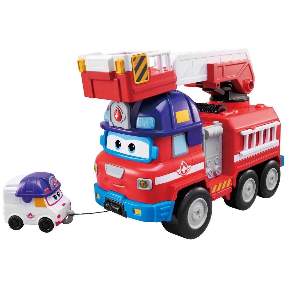 A Super Wings Szárnyalóinak nem csak repülők segítenek a küldetések megoldásában, hanem egyéb járművek is! Most például egy tűzoltó autó segíti a mentést, akinek segítségével egészen magasba tudnak emelkedni! A tűzoltó autó létrája mozgatható, kosarába pedig pont belefér egy repcsi.á