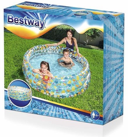 Ez a vidám, gyümölcs mintás Bestway 51048 felfújható medence - gyermekeknek tervezett nyári pancsoló medence, amely tökéletes választás a kertbe vagy teraszra, ha a kicsiknek szeretnél egy szórakoztató és hűsítő vízi élményt nyújtani. A 170 x 53 cm-es méret bőséges helyet biztosít a játékhoz, miközben a három légkamrás felépítés stabil szerkezetet és komfortos falakat ad a használat közben. A medence 697 liter víz befogadására képes, így ideális kisebb kertekbe vagy nyári szünet alatti pancsoláshoz is. A feltűnő gyümölcs mintás, élénk színek vidám, barátságos hangulatot teremtenek, ami garantáltan mosolyt csal a gyerekek arcára. Anyaga tartós, erős PVC (vinyl), amely ellenáll a mindennapi használatnak és praktikus tárolást, gyors felfújást illetve leeresztést tesz lehetővé. A csomag javító foltot is tartalmaz a kisebb sérülések egyszerű kezeléséhez. Korosztály: 6 éves kortól ajánlott, így kisiskolás gyerekek számára ideális medence, amely felügyelet mellett szórakoztató nyári kikapcsolódást biztosít.