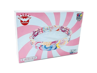 Ez a Suntoy Pool Candy World S vidám cukorkás mintájú kis felfújható medence kifejezetten a kicsik nyári pancsolásához készült, klasszikus gyermek-medence designnel és szerethető grafikával, ami élénk színeivel azonnal felkelti a gyerekek érdeklődését. A 122 x 23 cm-es méret ideális kis udvarokba, teraszokra vagy nyaralóba, elegendő helyet biztosít a játékhoz és hűsöléshez, miközben a könnyen felfújható, többrétegű PVC (műanyag) konstrukció stabil és biztonságos pancsolófelületet ad. Korosztály: 3 éves kortól ajánlott, így felügyelet mellett biztonságosan használható, és garantálja a vidám, szórakoztató nyári élményeket a legmelegebb napokon.