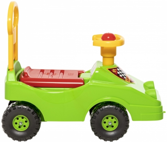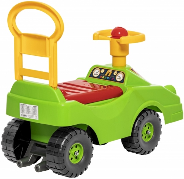 Dorex nagy bébitaxi 5038 zöld egy vidám és klasszikus lábbal hajtós gyerekjármű, amely nagyszerű választás kisgyermekek első játékautójának. Strapabíró és tartós műanyag kivitelű kisautó, amelyen a gyerek kényelmesen ülve, lábainak használatával gurulhat előre, így játékosan fejleszti a mozgáskoordinációt és egyensúlyérzéket. A jármű kerekei stabil gurulást biztosítanak, a kormányrudat könnyű irányítani, és a kis fuvola vagy duda hang még szórakoztatóbbá teszi a játékot. A kisautó nyitható üléssel rendelkezik, ami alatt praktikus tárolóhely található a kedvenc apróságok számára. A bébitaxi mérete kb. 57 cm hosszú x 24 cm széles x 45 cm magas, így ideális méretű a legkisebbek számára, miközben kényelmesen használható beltérben és sima kültéri felületeken is. Ajánlott 1-3 éves korosztálynak, és maximális terhelhetősége kb. 30 kg, ami hosszabb játékidőt tesz lehetővé. Ez a zöld színű kisautó nagyszerű ajándék lehet születésnapra, ünnepekre vagy bármilyen játékos kalandhoz.