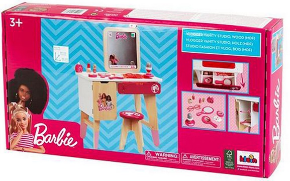 Ez a Theo Klein 5716 Barbie Vlogger Studio egy modern, nagy méretű szerepjáték smink- és szépségstúdió, amelyben a gyerekek saját vloggert és beauty influenszert játszhatnak, miközben sminkelnek, hajat formáznak és kreatív "videós tartalmakat" készítenek, így fejlesztve az önkifejezést, a fantáziát és a szerepjátékos készségeket. A szett egy sminkasztalt székkel, tárolórekeszekkel és fiókokkal, valamint számos kiegészítővel (játék sminkek, fésű, tükör, parfüm és vloggerezéshez kapcsolódó kellékek) érkezik, amelyek még élethűbbé teszik a játékélményt. Méret: 55 x 30 x 83 cm, stabil, álló játékközpont, amely kényelmes használatot biztosít többféle szerepjátékhoz is. Anyag: strapabíró MDF fa és kiváló minőségű, gyermekbarát műanyag kiegészítők kombinációja. Korosztály: 3 éves kortól ajánlott, kreatív szerepjátékhoz és vloggerezős, sminkelős fantáziajátékokhoz ideális.