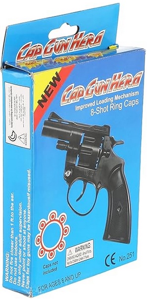 Stílusos és színes Hero kap-gun játékpisztoly, amely szórakoztató és kreatív�játékot kínál gyerekek számára. Ez a műanyagból készült játék-fegyver könnyű, mégis masszív kivitelű, így kényelmesen fogható és hosszabb ideig is használható. A multiszínű dizájn miatt vizuálisan is vonzó a gyerekeknek, miközben biztonságos játékélményt nyújt a szerepjátékokhoz és fantáziadús kalandokhoz. A pisztoly mérete kb. 9 cm hosszú, így jól illeszkedik gyermek-kézbe és könnyen kezelhető szabadtéri vagy beltéri játékhoz.