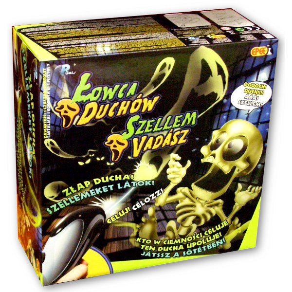 Szellemes, kísérteties szórakozás, ami biztos ébren tart, próbáld ki, ha mered! Keltsd életre a koponyát, és tárazd be a pisztolyod, mert szellemek fogják megszállni a szobádat. A koponya körbe-körbe forog, nézelődik, miközben csúf kísérteteket vetít a falra. A szellemek csak pillanatokra fognak megjelenni, így minél gyorsabban és pontosabban kell céloznod, hogy te lehess a szellemvadász! A játékot kísérteties sikolyok teszik még hátborzongatóbbá! A játék nagyon jól fejleszti a memóriát is, a játékosokat gondolkodásra, memorizálásra serkenti. A koponya 4 db AA ceruzaelemmel, a pisztoly 3 db AAA vékony ceruzaelemmel működik, a csomagolás az elemeket nem tartalmazza.