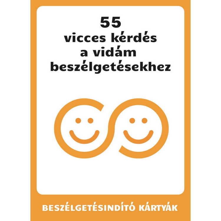 Vicces kérdések, amik bármilyen társas helyzetet megkönnyítenek. Segítségükkel könnyedén szóba elegyedhetsz, vidám beszélgetéseket indíthatsz, sőt, még a beszélgetés fonalát is vezetni tudod. Közben pedig egyetlen percig sem kell azon aggódnod, hogy megakadna a beszélgetés, hiszen akkor ismét ott egy vicces kérdés a zsebedben. Az 55 vicces beszélgetésindító kártya hasznodra lesz ebben: szórakoztató, vicces kérdések egész tárházát találod meg bennük. Segítségükkel egy vidám, nevetéssel teli beszélgetés irányába terelheted a társalgást, és biztosíthatod a remek közös szórakozást. Ezek a vicces kérdések ráadásul nem csak pillanatnyi nevetést váltanak ki, de hosszan tartó, szórakoztató társalgási lehetőséget is kínálnak. A legkülönfélébb témákat érintheted velük a könnyed csevejtől a világmegváltó eszmecseréig.