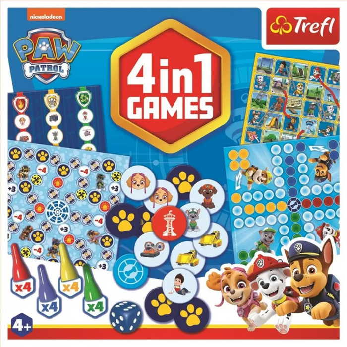 Mancs őrjárat 4 az 1-ben társasjáték gyerekeknek. Négy játék egy dobozban a Mancs őrjárat sorozat rajongóinak.