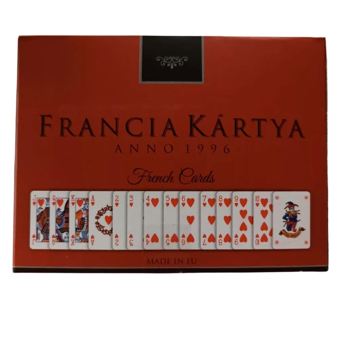 Francia kártya dobozban a klasszikus, legismertebb játék- és kártyatípus. Ezzel a paklival számos hagyományos kártyajáték játszható, például römi, kanaszta, póker vagy fekete macska. A csomag két pakli francia kártyát tartalmaz, melyek mindegyike 13-13 lapból áll négy színben: pikk, káró, treff és kőr. A lapok értékei 2-től 10-ig, továbbá bubi (J), dáma (Q), király (K) és ász (A), valamint a csomagban joker lapok is találhatók.