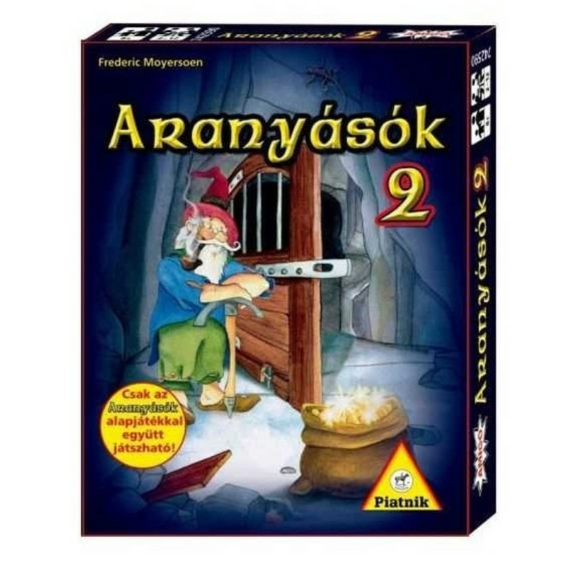 "A törpékre új szerepke (Főnök, Nyerészkedő, Geológus), a játékosokra új akció és útkártyák várnak. Az aranyásók célja változatlanul az, hogy járatot ássanak az aranyig. Az utakat helyenként ajtók zárják el, a tárnákban pedig értékes kristály is várja az aranyásókat! Végül az a játékos nyer, akinek a legtöbb aranyat sikerült összegyűjtenie!Csak az ""Aranyásók"" alapjátékkal együtt játszható!A játék tartalma: (amihez az alapjáték elemei szükségesek)1 ív az aranyrögökkel1 játékszabály30 útkártya21 akciókártya15 törpék kártya"