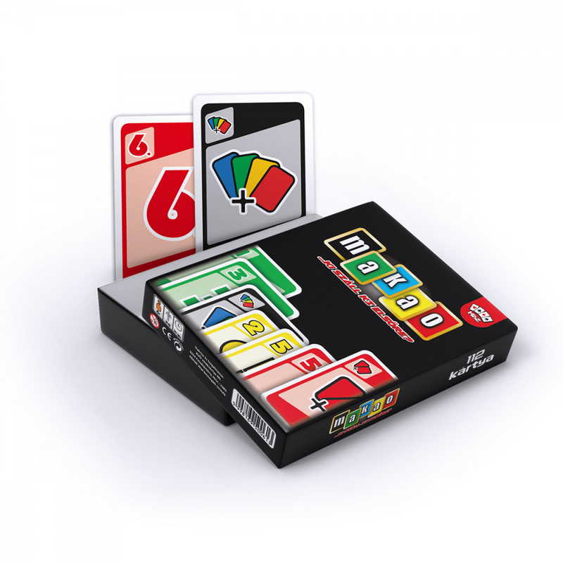 Jól ismert játék, új dizájn. Ügyeskedj, taktikázz a pörgős játék során. Legyél az első aki kiszáll a játékból. A többi játékos igyekszik majd megakadályozni de mindig legyen válaszod a próbálkozásaikra. Az utolsó lapnál ne felejts el felkiáltani hogy �makaoö különben búcsút mondhatsz a kiszállásnak a következő körben. Akciódús, vicces társasjáték mely órákon át képes szórakoztatni a családot és a társaságot.