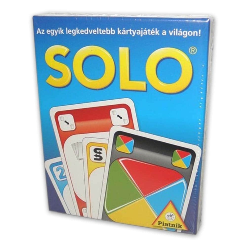 "Mindenki kap 8 lapot. Aki elsőként lerakja a lapjait, az nyer. De vigyázat: az akciókártyák mindent a feje tetejére állítanak és meglepő fordulatokat okoznak! A Solo a világ egyik legkedveltebb kártyajátéka. Akciókártyák, szédületes akciók!Tartalom: 112 kártya 1 játékszabály"