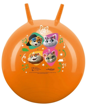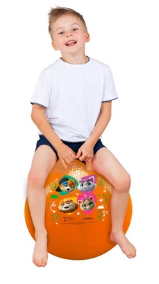 Vidám cicás ugráló labda (hopper labda) 45-50 cm átmérővel, strapabíró és rugalmas PVC anyagból készült, amely hosszú távon is ellenáll az intenzív használatnak; a felfújható kialakítás és a masszív, ergonomikus fogantyú (fülek) stabil és biztonságos kapaszkodást biztosít ugrálás közben; ideális beltéri és kültéri játékhoz egyaránt, miközben játékosan fejleszti az egyensúlyt, a mozgáskoordinációt és az izomerőt; könnyű, mégis tartós kialakítású, kompakt mérete miatt egyszerűen tárolható és szállítható; 3 éves kortól ajánlott, tökéletes választás aktív, mozgáskedvelő gyerekek számára, akik imádják a vidám, állatmintás játékokat.
