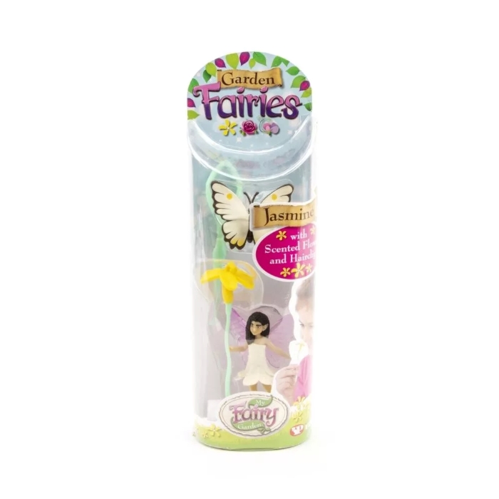 Ez a My Fairy Garden Kerti tündérek - Jázmin játék egy kicsi figurakészlet, amely egy kerti tündérfigurát, egy illatos virágot, egy felcsíptethető pillangót és egy hajcsatot tartalmaz. A tündérfigurát a játék során a kert vagy más fantáziavilág kiegészítőjeként lehet használni, a pillangó pedig díszként a virágon vagy a hajban is elhelyezhető.