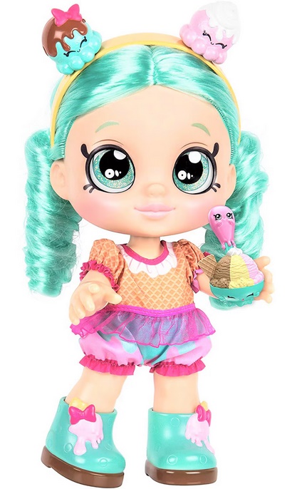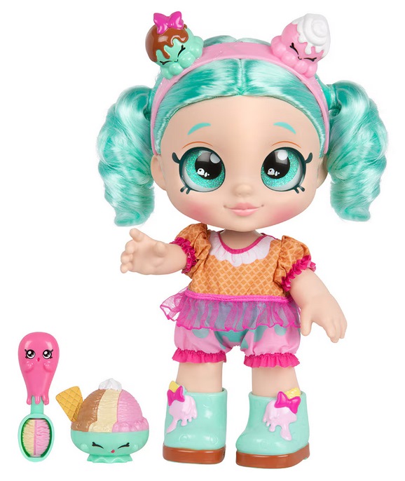 Ez egy Kindi Kids Peppa Mint interaktív baba játék, amely a Shopkins világából ismert karakteren alapul, és kiegészítőkkel érkezik. A figura kb. 30 cm magas, nagy csillogó szemekkel és mozgatható fejjel rendelkezik, valamint az étel-játék funkciókkal is leköti a gyerekeket: a csomagban lévő fagylaltos kanalat használva etetheted a babát, ami fejleszti a szerepjátékos készséget és a kreatív szórakozást. A játékot 3 éves kortól ajánlják, és más Kindi Kids babákkal is kombinálható a még nagyobb játékélmény érdekében.