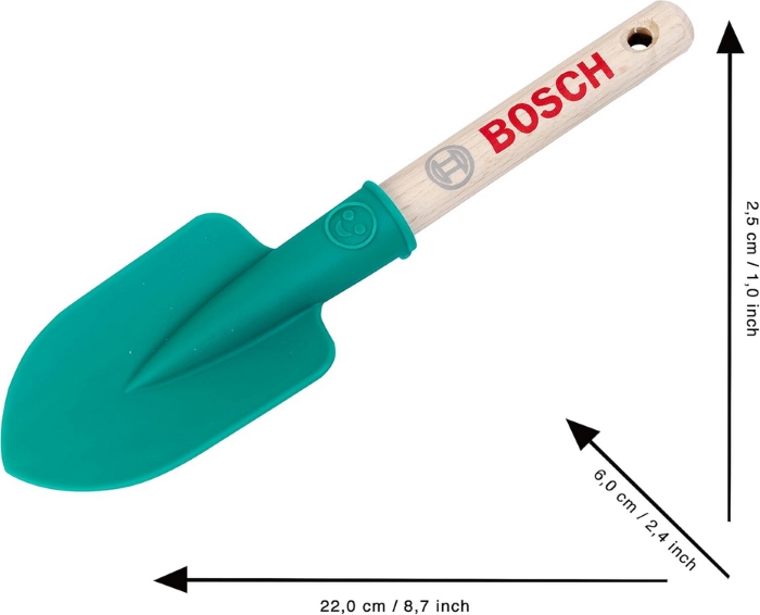 Ez a Theo Klein Bosch kerti ásó (2786) egy valósághű kialakítású gyerek kerti szerszám, amely a Bosch eredeti kerti eszközeinek mintájára készült, így a gyerekek játék közben utánozhatják a felnőttek kerti munkáit, például ásást és homokozást, miközben fejlődik a mozgáskoordinációjuk és a finommotorikájuk. A strapabíró, mégis könnyű kivitelnek köszönhetően ideális szabadtéri szerepjátékokhoz, homokozóban vagy kertben is használható. Mérete: 22 x 6 x 2,5 cm. Anyaga: tartós, gyerekbarát műanyag (PP), amely biztonságos és könnyen kezelhető. Korosztály: 3 éves kortól ajánlott, fiúknak és lányoknak egyaránt, akik szeretik a kerti és szabadtéri szerepjátékokat.