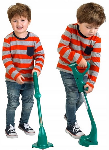 Klein Gyermek Fűkasza Bosch-stílusú játék, amely élethű kertészkedést kínál kis kertészeknek. Mechanikus, elem nélküli működés, kattogó gördülő kerekek és kényelmes fogantyú biztosítja a valósághű élményt. Strapabíró, gyermekbarát műanyag, mérete 57 x 21 x 16 cm, 3 éves kortól ideális ajándék és szerepjátékhoz.